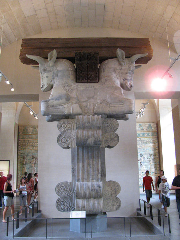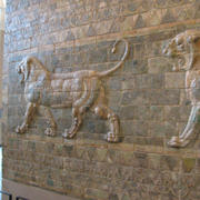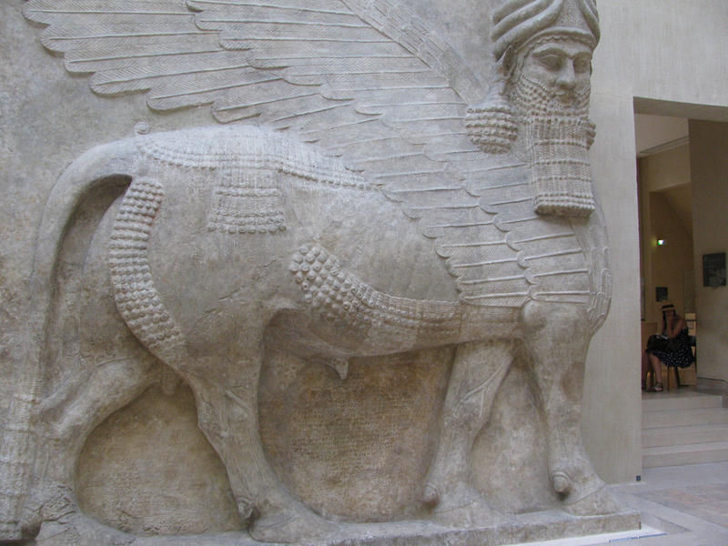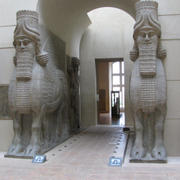 okřídlení býci z bran Babylonu. Prý, projít kolem nich přináší štěstí.