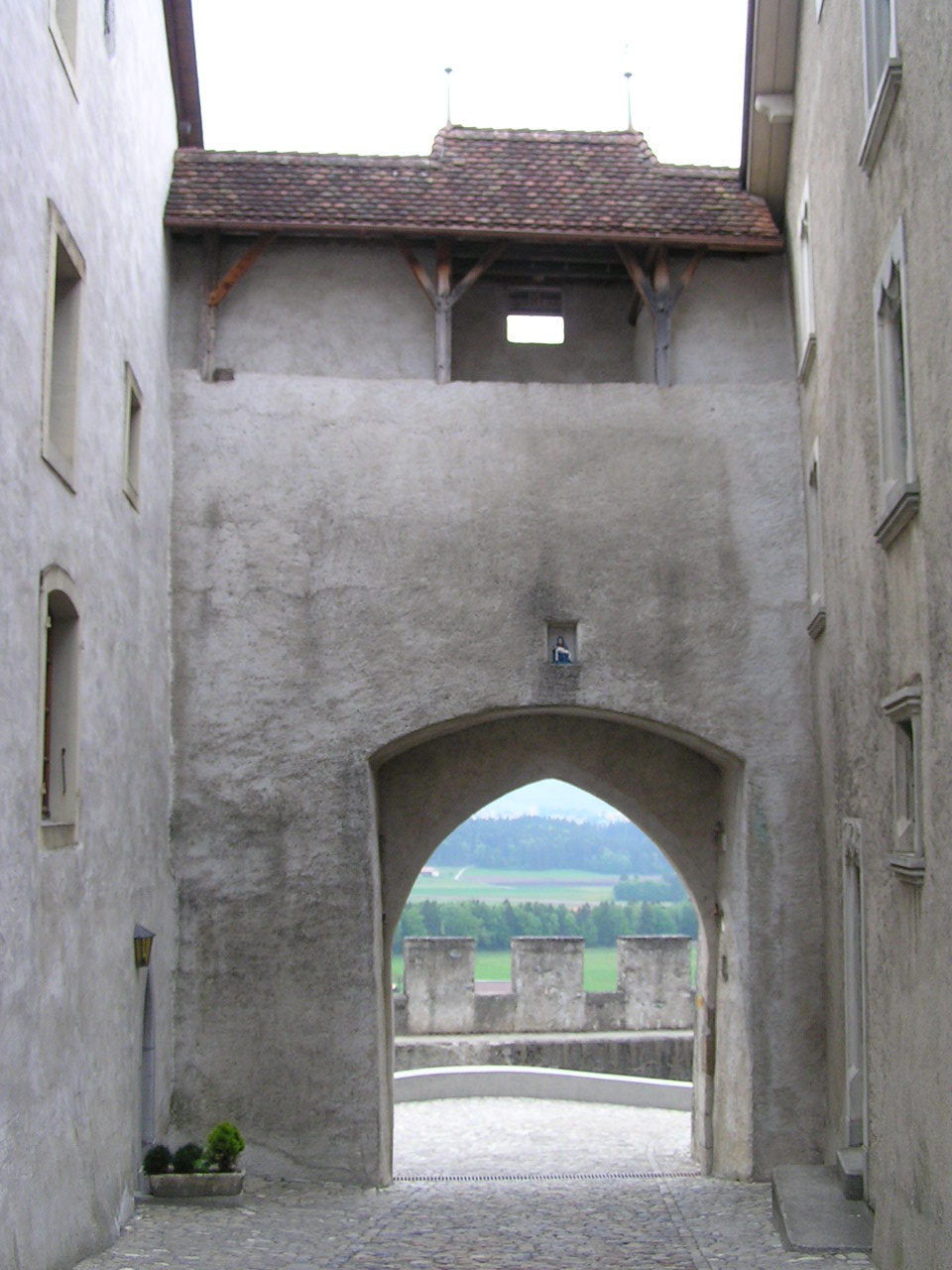 0167 Gruyéres - vstupní brána do hradu Greyerz.JPG Datum: 22.5.2008