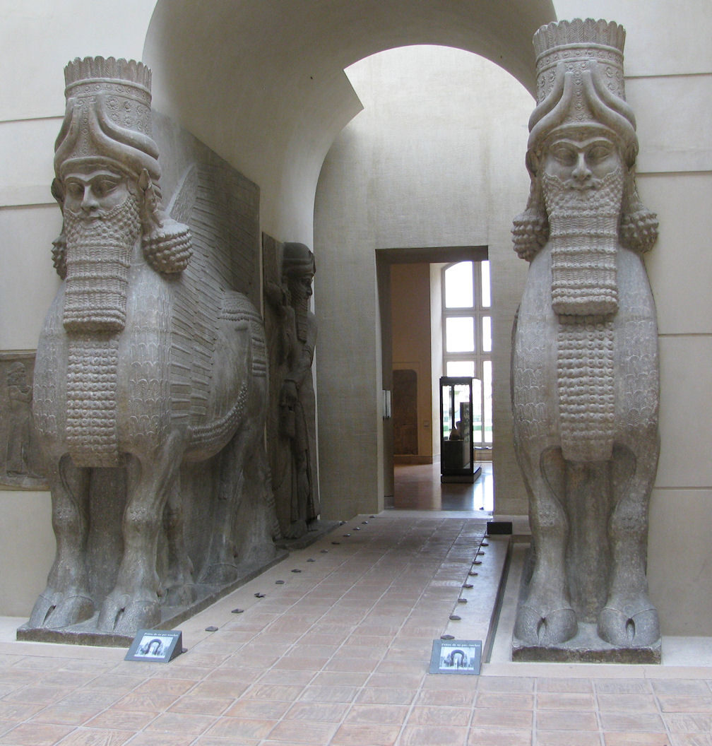 Okřídlení býci Datum: 20.8.2009 okřídlení býci z bran Babylonu. Prý, projít kolem nich přináší štěstí.